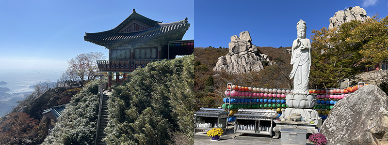 해골물로 유명한 원효대사가 신라시대 683년(신문왕 3)때 지은 사찰로 조선 태조 이성계가 이곳에서 백일기도 후 조선왕조를 연 것에 감사하여 1660년 왕실의 원당으로 삼았다고 합니다. 한국 3대 관세음보살 성지로 꼽히며, 보리암에서 내려다보 남해의 절경이 일품입니다.