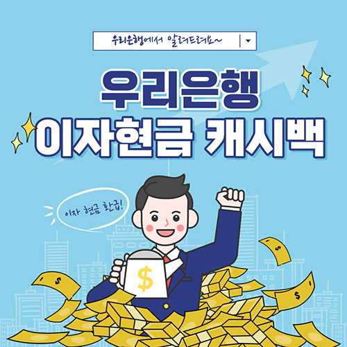 높은 은행 이자로 힘들어하는 자영업자 및 소상공인을 위해 우리은행에서 민생금융지원 정책의 일환으로이자 캐시백 현금 환급 지원 방안을 NH농협은행에 이어 두번째로 발표하였습니다.