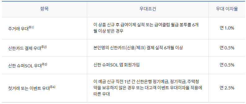 - 급여이체/급여클럽 월급봉투 6개월 이상 수령 시 1.0%p