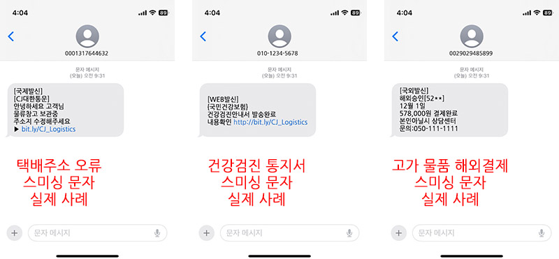 | 3 | '고가의 물품 해외 결제' 문자 발송 | 고가의 물품이 해외에서 결제되었다는 결제내용과 함께 문자에 있는 번호로 전화 유도 |