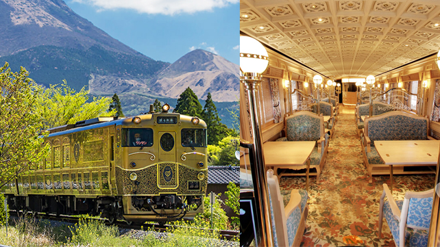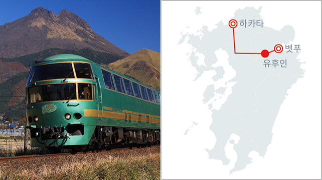 온천으로 유명한 유후인 리조트, 그 유후인의 매력을 표현하고자 나뭇결 인테리어 디자인으로 구성된 기차로 타는 순간부터 리조트 분위기를 느낄 수 있습니다.