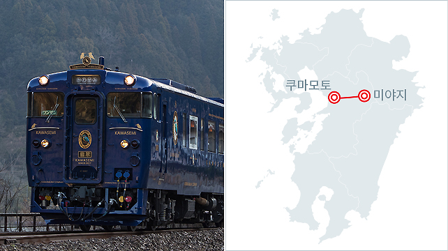쿠마모토현 히토요시와 가고시마현 요시마츠를 연결하는 열차입니다. 요시마츠 행 <이사부로>, 히토요시행 <신페이>라 불리는 이 이름은 메이지 시대 철도 위인들의 이름을 딴 명칭입니다. 키리시마 절경과 사쿠라지마를 바라볼 수 있는 이 구간은 일본 3대 차창이라는 타이틀을 가지고 있으며 커다란 창문을 통하여 파노라마로 경치를 감상할 수 있습니다.