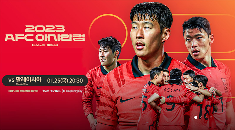 앞서 요르단전에서도 안내드렸듯이 2023 AFC 카타르 아시안컵은 공중파 및 네이버에서는 생중계를 하지 않고, TvN, TvN SPORTS, TVING, 쿠팡플레이에서 생방송으로 관람하실 수 있습니다.
