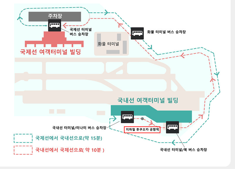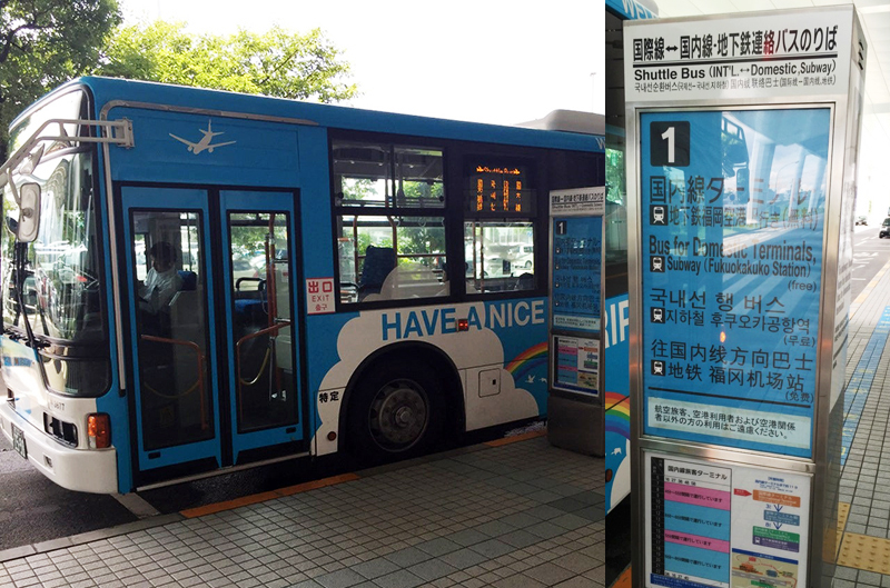 후쿠오후쿠오카공항역으로 가는 무료셔틀버스입니다. 후쿠오카공항역에서 하카타역으로 지하철을 이용하려면 1번 라인에서 타고, 후쿠오카공항역까지 가게 됩니다. 공항버스를 타고 하카타역까지 직항으로 가고자 계획했던 사람들 중에 공항버스를 놓친 경우 버스를 다시 기다려야 하니 계획을 바꿔 이 버스를 타는 것도 좋은 방법입니다.