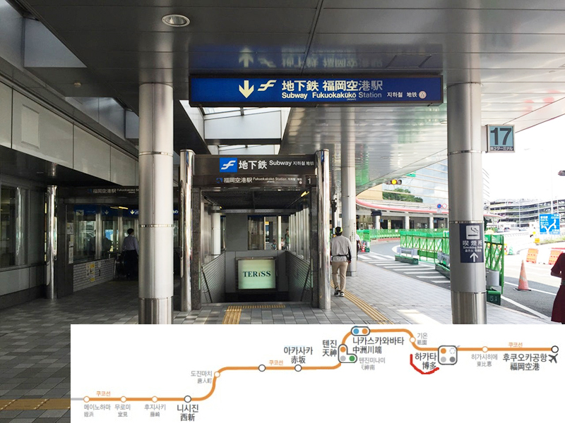 1) 무료셔틀버스 (15분 정도 소요) → 후쿠오카공항역(지하철) → 하카타역