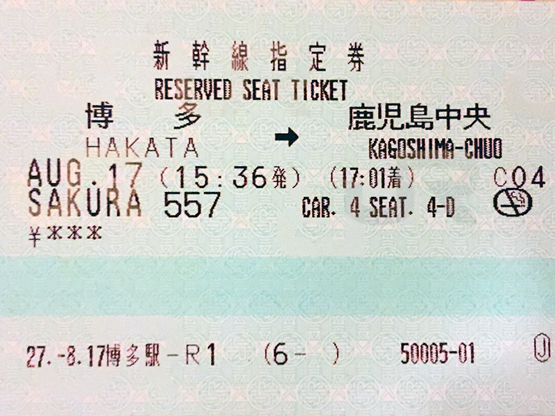 가고시마 추오역(중앙역)까지는 장거리를 이동해야 하기 때문에 좌석을 미리 예약하고 교환권으로 바꾼 규슈 레일패스와 좌석번호와 시간이 표시된 기치표를 발권받으면 됩니다. 규슈 레일패스는 분실하면 그 효력이 사라지며 타인의 것은 사용이 불가능합니다. 기차를 탈 때마다 규슈 레일패스를 보여줘야 탑승이 가능합니다.