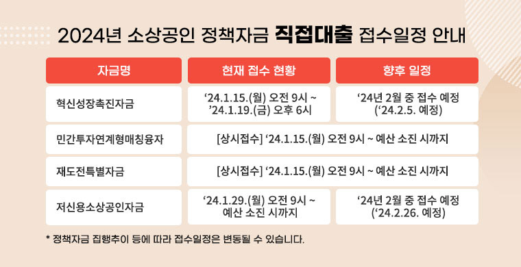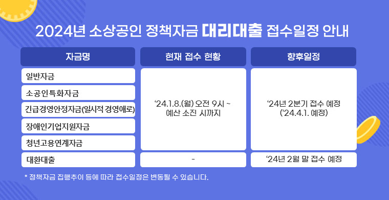 2024년 소상공인 정책자금 대리대출 접수 일정 안내